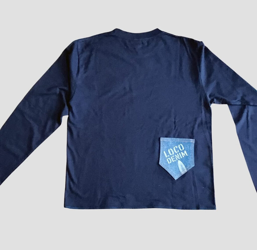 デニムに LocoDenim Ocean のステンシル を施したモチーフを、