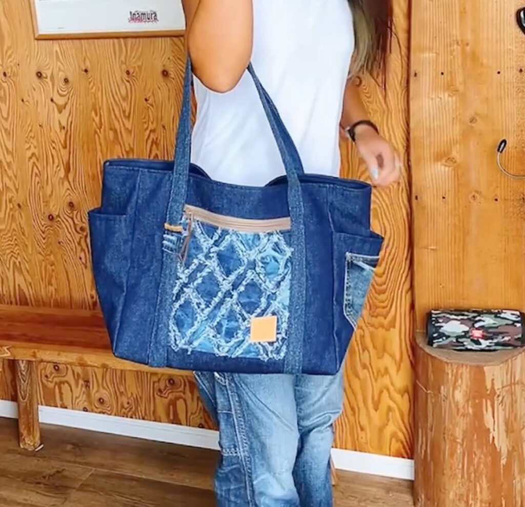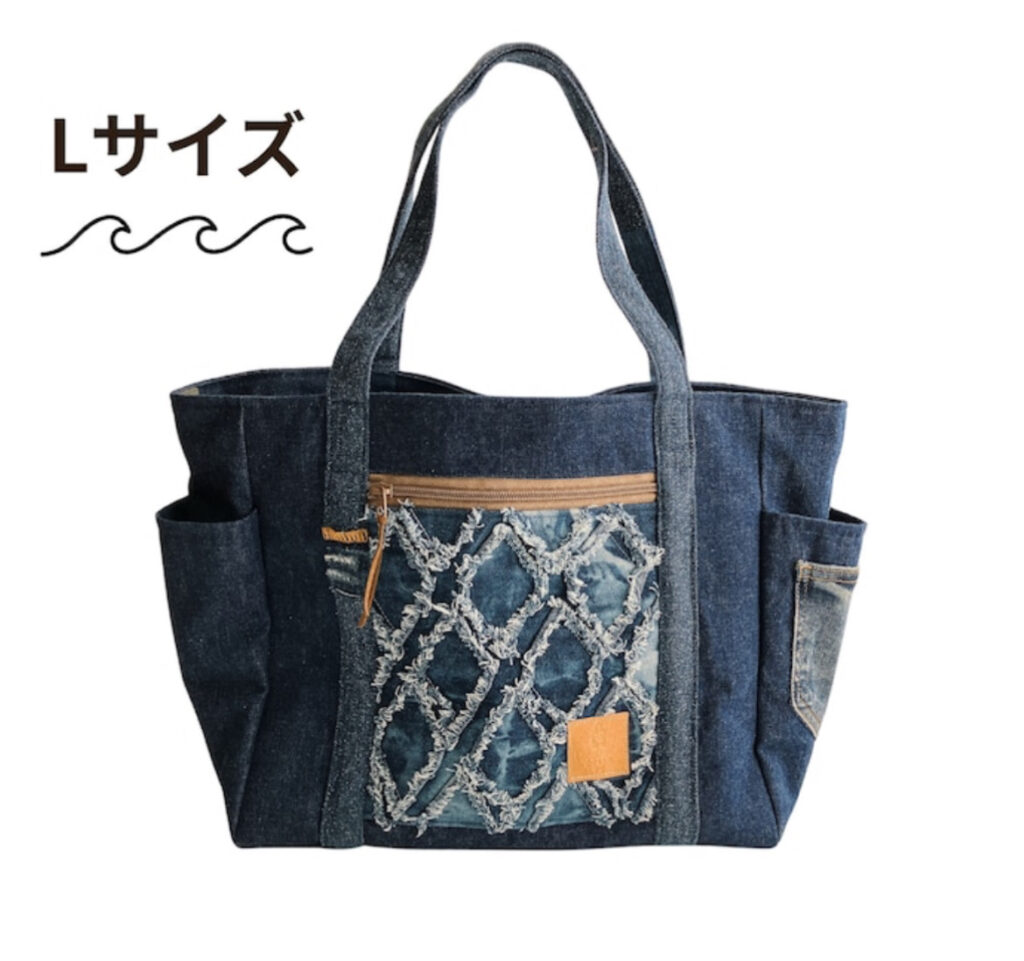 - 持ち手:複数のデニムをつなぎ合わせた個性的なデザイン